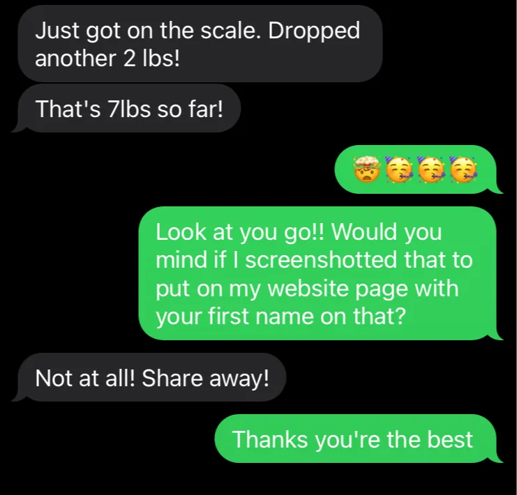 I've made sure that you get absolutely everything necessary to confidently start your weight loss journey and successfully kickstart your weight loss goals so that you can see real changes (with most clients seeing results in 5 months).